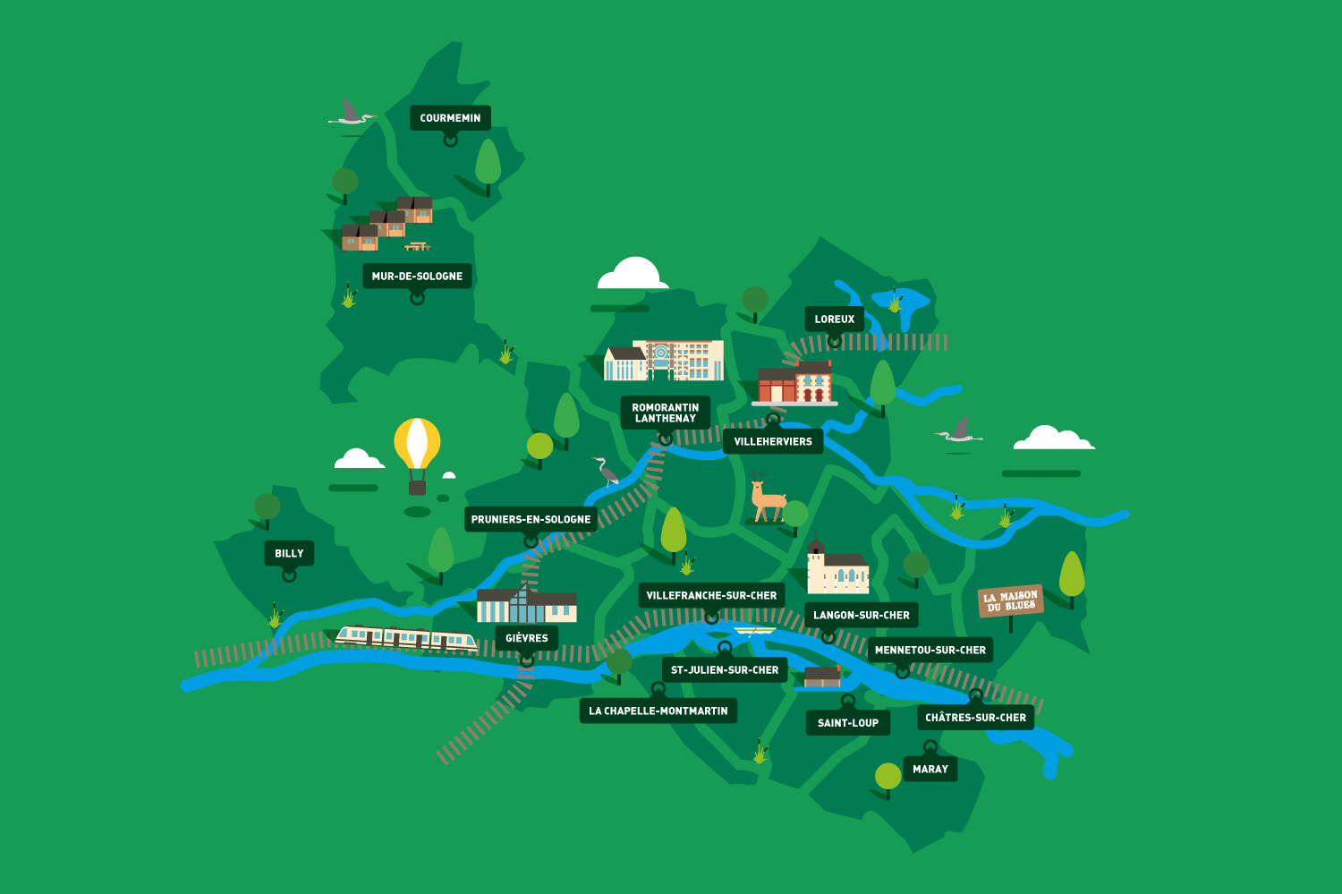 L’atelier a conçu une illustration synthétisant l’union des territoires représentés par la Communauté de Communes du Romorantinais et du Monestois.