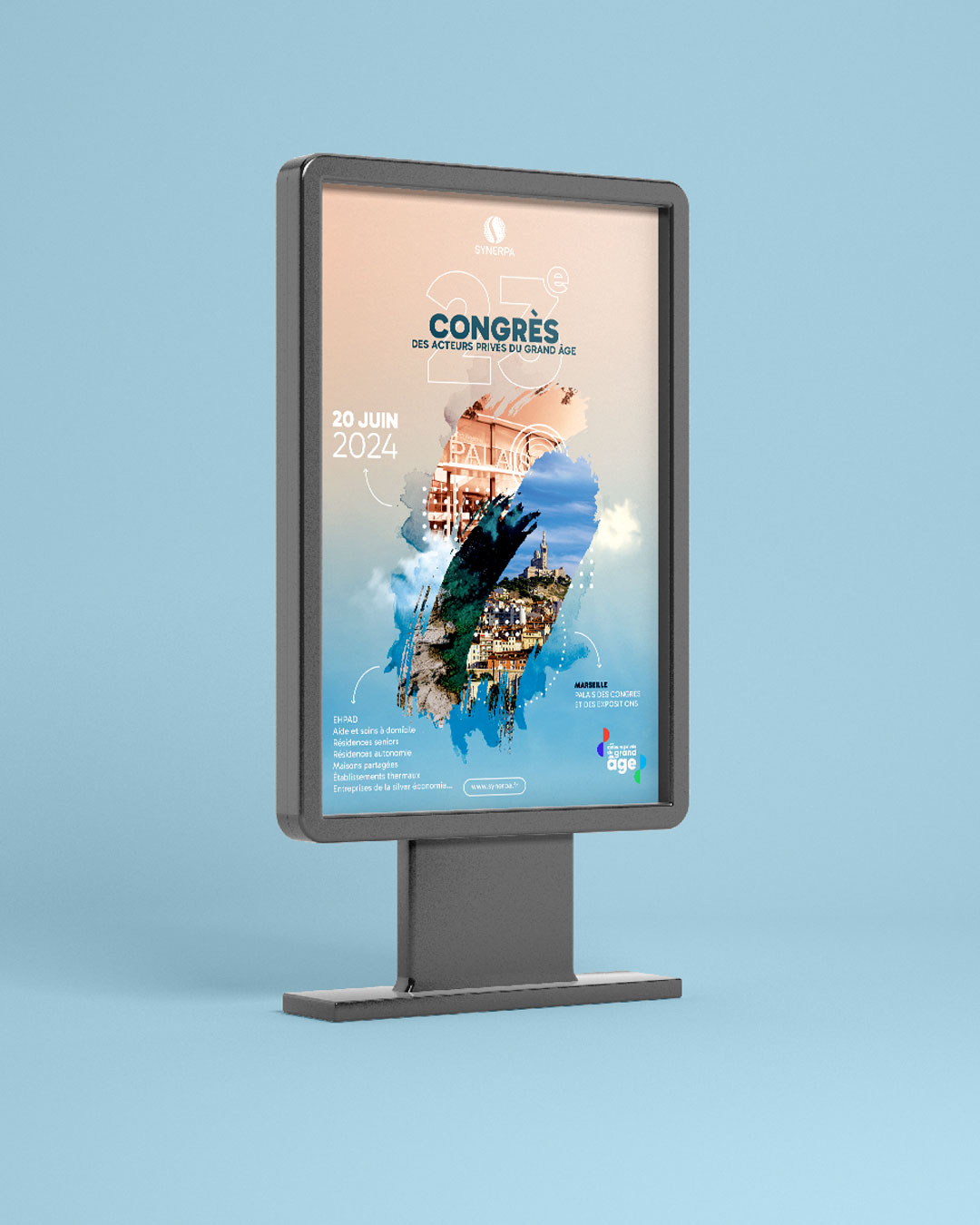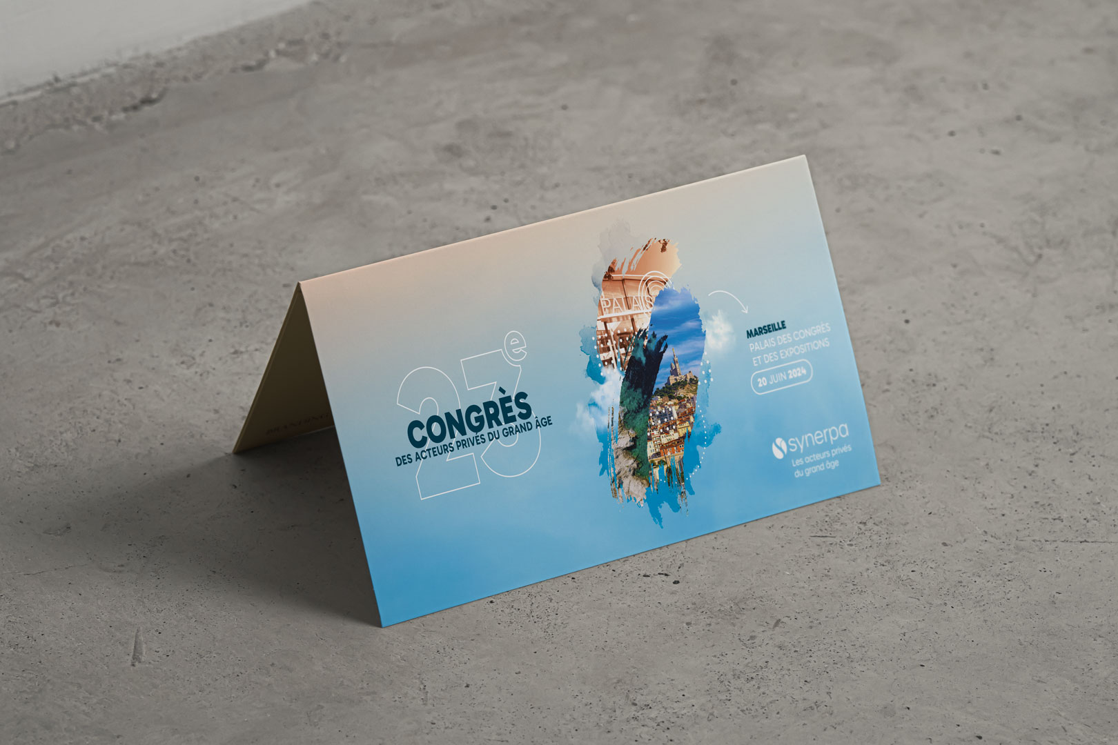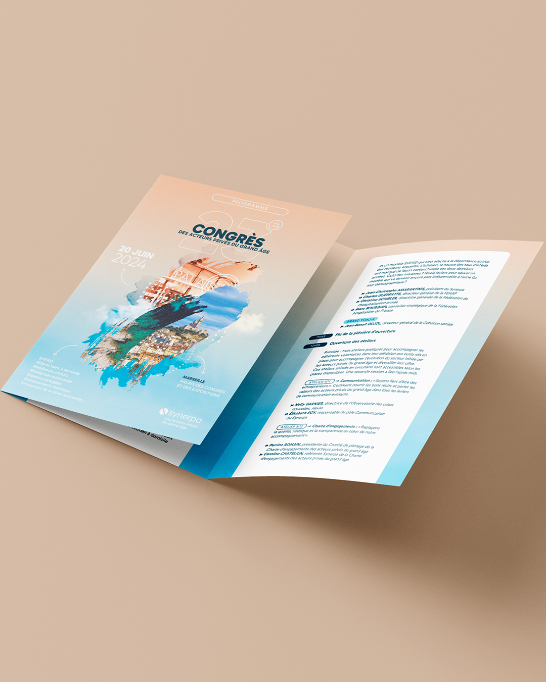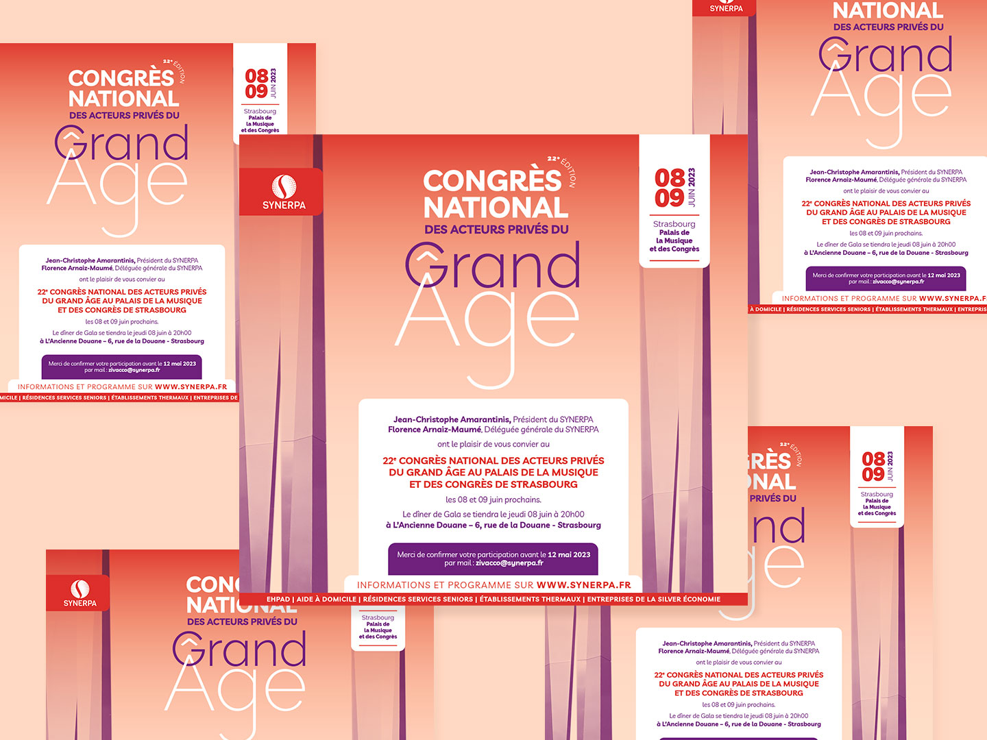Le Synerpa nous consulte régulièrement pour la création de supports liés à leur congrès annuel (affiches, programmes, roll-up, invitations…).